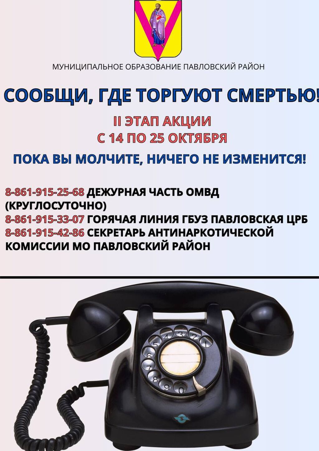 В период с 14 по 25 октября 2024 года пройдет II этап Всероссийской антинаркотической акции «Сообщи, где торгуют смертью».