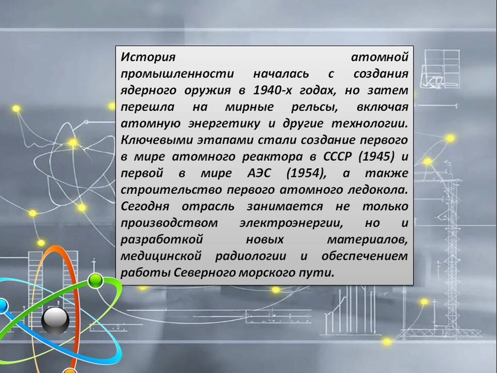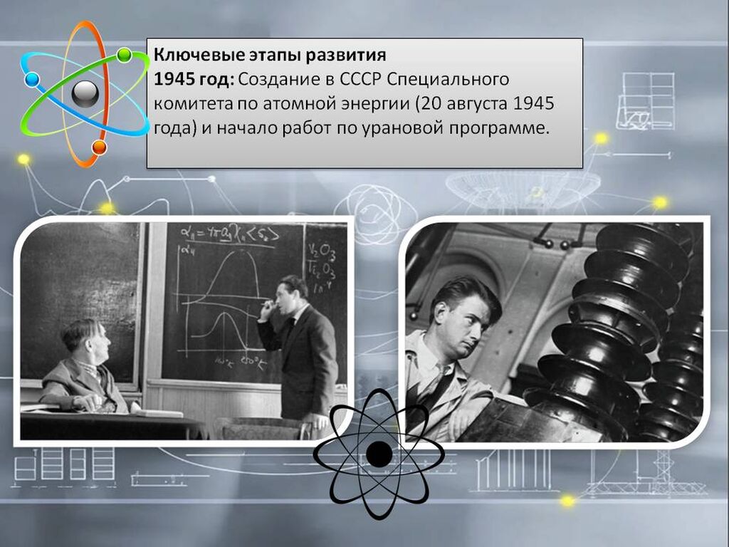 История развития мирного атома включает множество уникальных открытий и достижений. В короткие сроки, всего за четыре года, создали атомную бомбу. В этом достижении мы стали вторыми: ядерный щит появился у нашей страны в ответ на угрозу со стороны США, которые летом 1945 года провели бомбардировку японских городов Хиросимы и Нагасаки, показав всему миру разрушительную силу нового оружия.